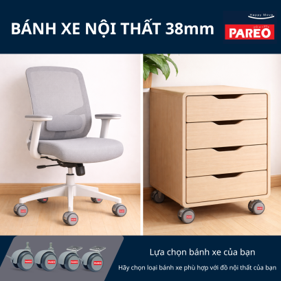 Bánh xe Có rất nhiều kiểu dáng để lựa chọn: đế lắp xoay, cọc vít trơn, cọc vít ren, cọc vít khóa. Bạn có thể lựa chọn phù hợp cho đồ nội thất của bạn.