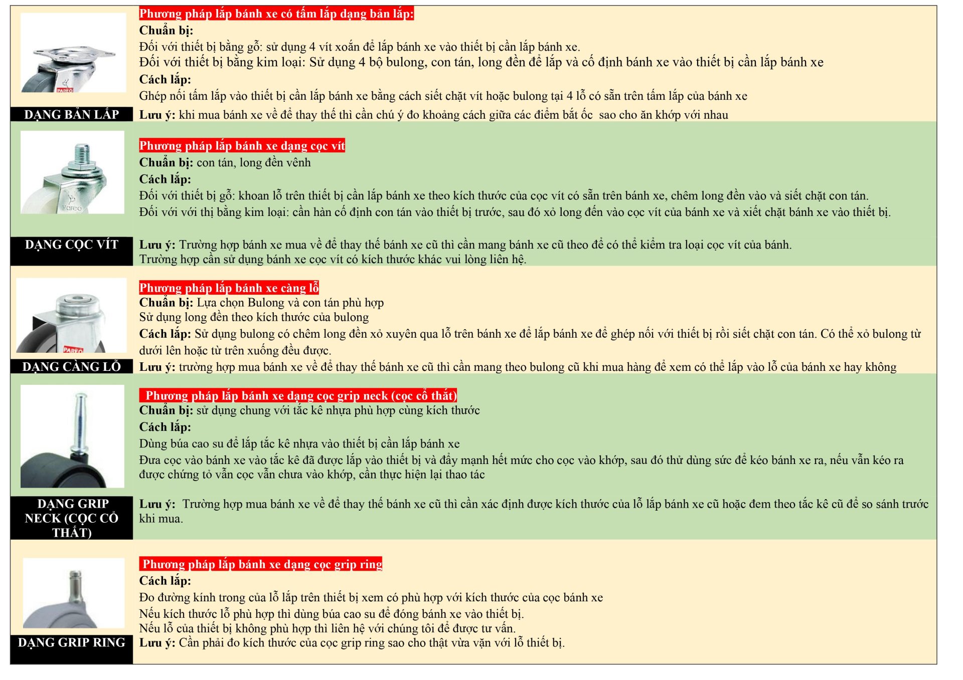 2.Lựa chọn bánh xe phù hợp với mục đích sử dụng theo bảng dưới đây:
