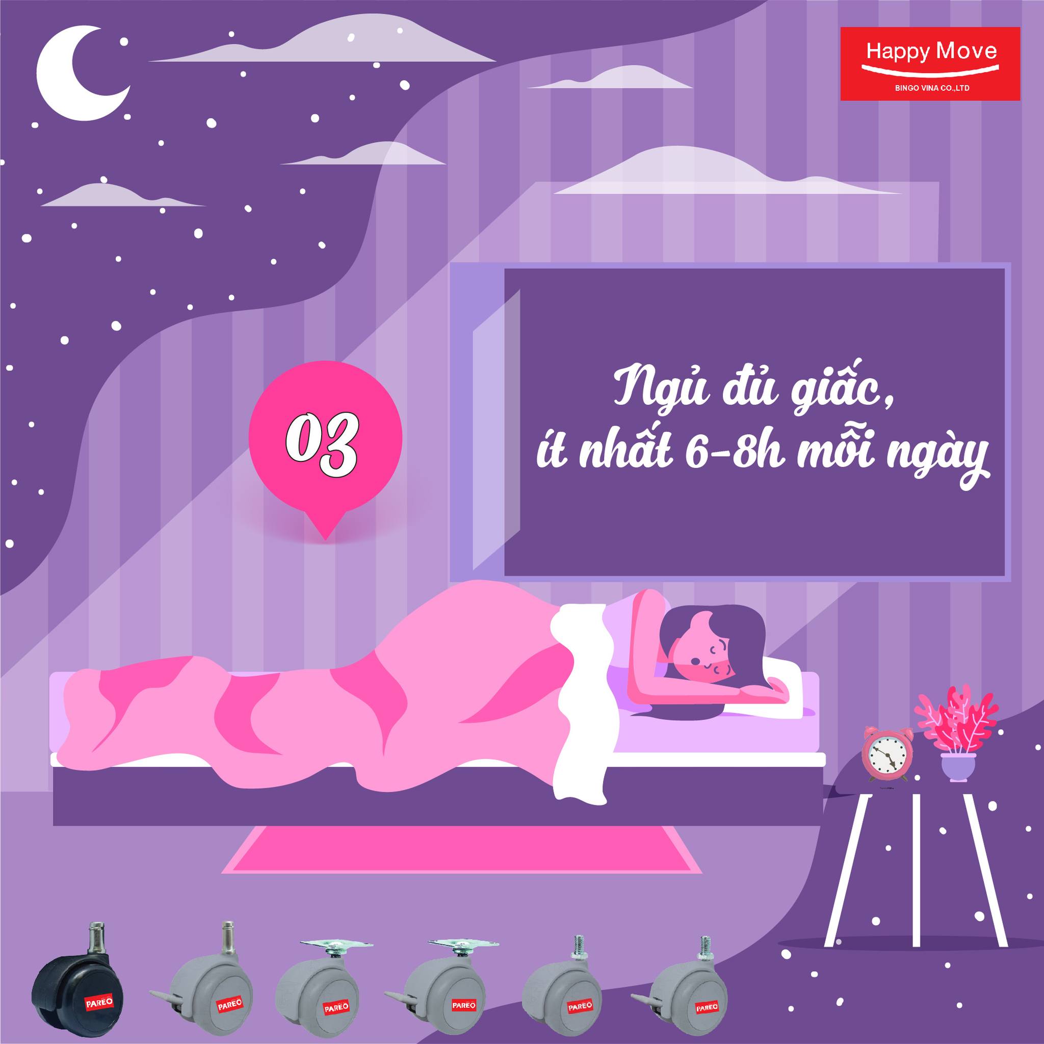 3. Ngủ đủ giấc. Ít nhất 6-8 giờ mỗi ngày để giúp cơ thể tránh rơi vào trạng thái mệt mỏi, giữ tinh thần luôn sảng khoái qua đó nâng cao năng suất lao động và hiệu quả công việc.