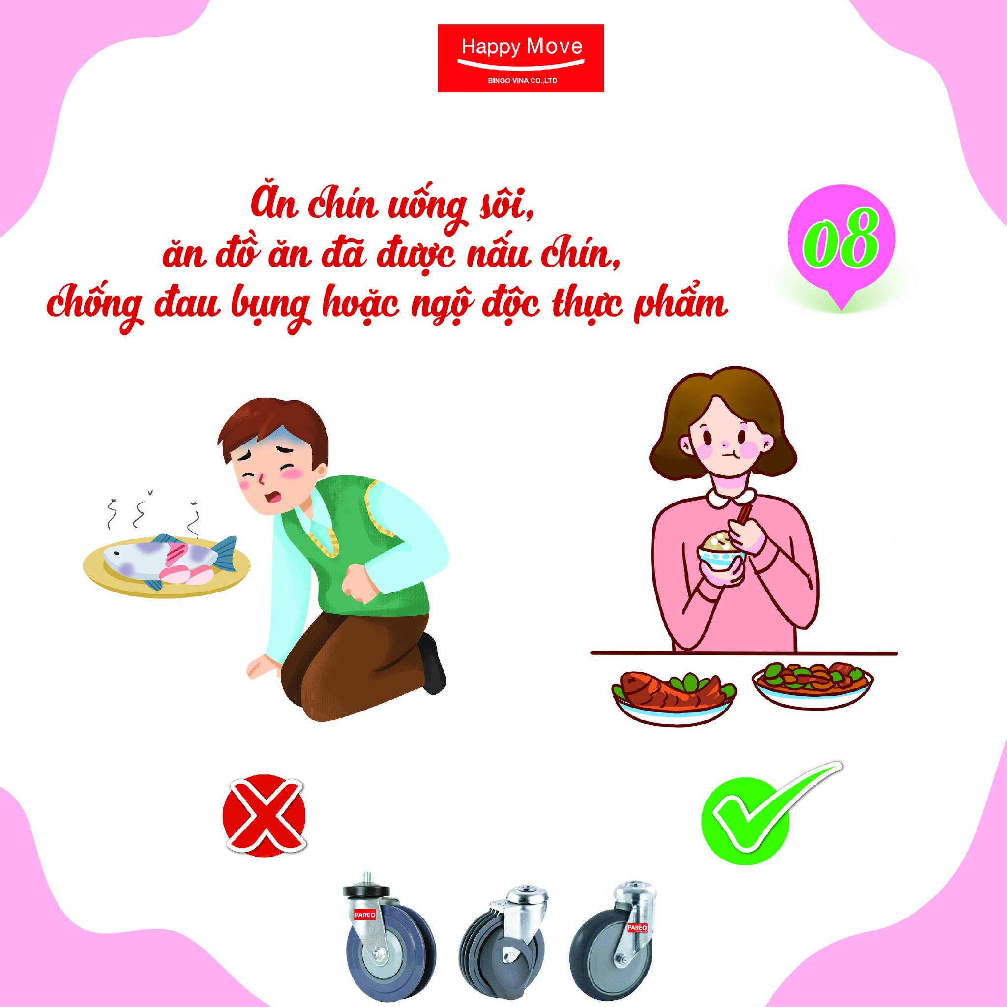 8. Ăn thức ăn mới nấu chín để giúp giảm ô nhiễm vi sinh vật gây ra các bệnh về đường tiêu hóa và ruột như ngộ độc thực phẩm.