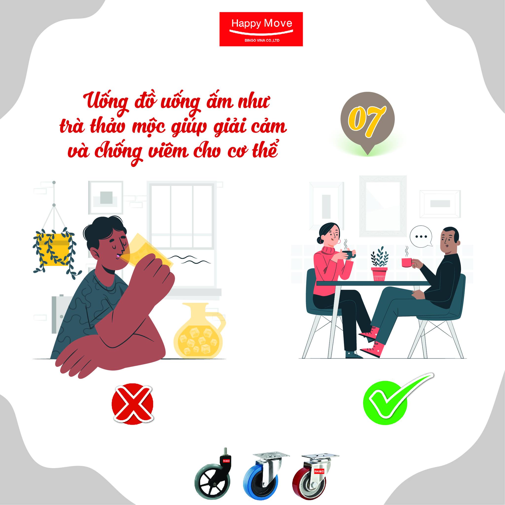 7. Uống đồ uống ấm như trà thảo mộc vì ngoài tác dụng giúp giải cảm cho cơ thể nó cũng có đặc tính chống viêm, ngăn ngừa cảm lạnh, nghẹt mũi, giảm sổ mũi và chữa viêm họng.