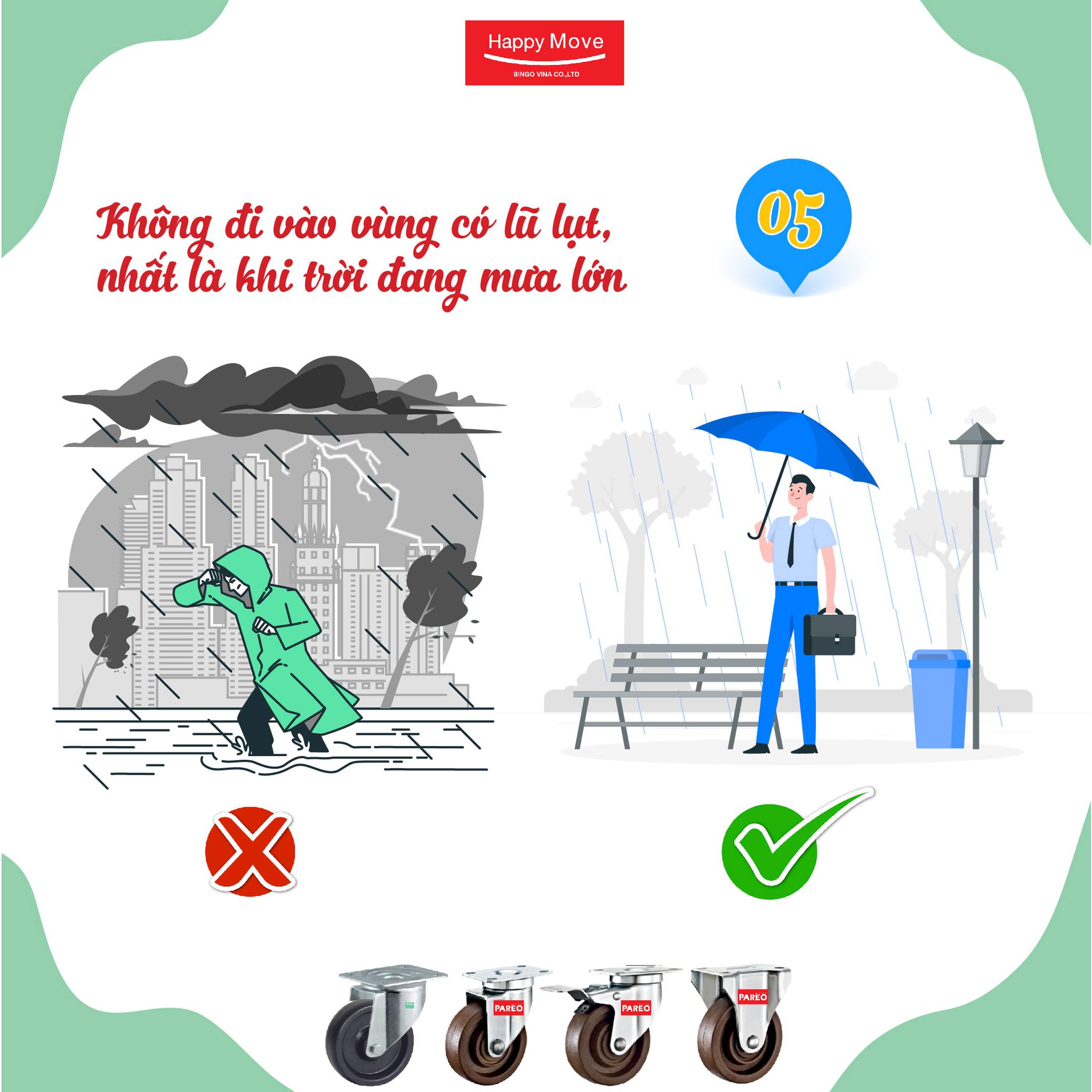 5. Không đi vào khu vực có lũ lụt vì nó là nơi tập trung của nhiều loại mầm bệnh cho dù nó là một con chuột hoặc ký sinh trùng khác nhau.