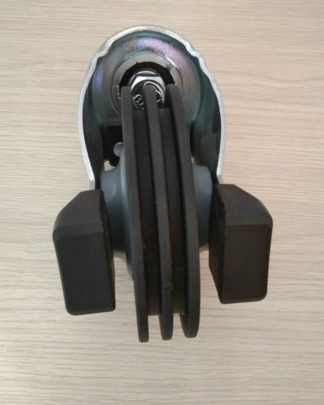 - Khóa bánh xe bằng cao su được thiết kế đặc biệt, giúp xe bám chắc trên thang, bảo đảm an toàn cho khách.