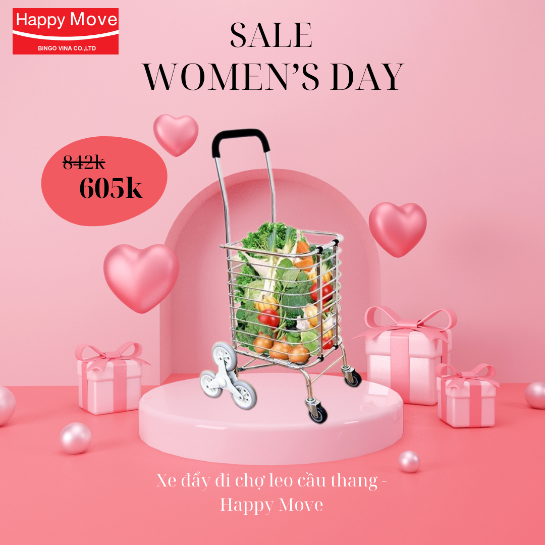 Xe đẩy đi chợ leo cầu thang Happy Move: là một mẫu xe tiện lợi dành cho các mẹ - các chị để đi chợ và mang đồ nặng lên cầu thang 1 cách dễ dàng và cũng không cần dùng túi nylon để đựng đồ ăn.