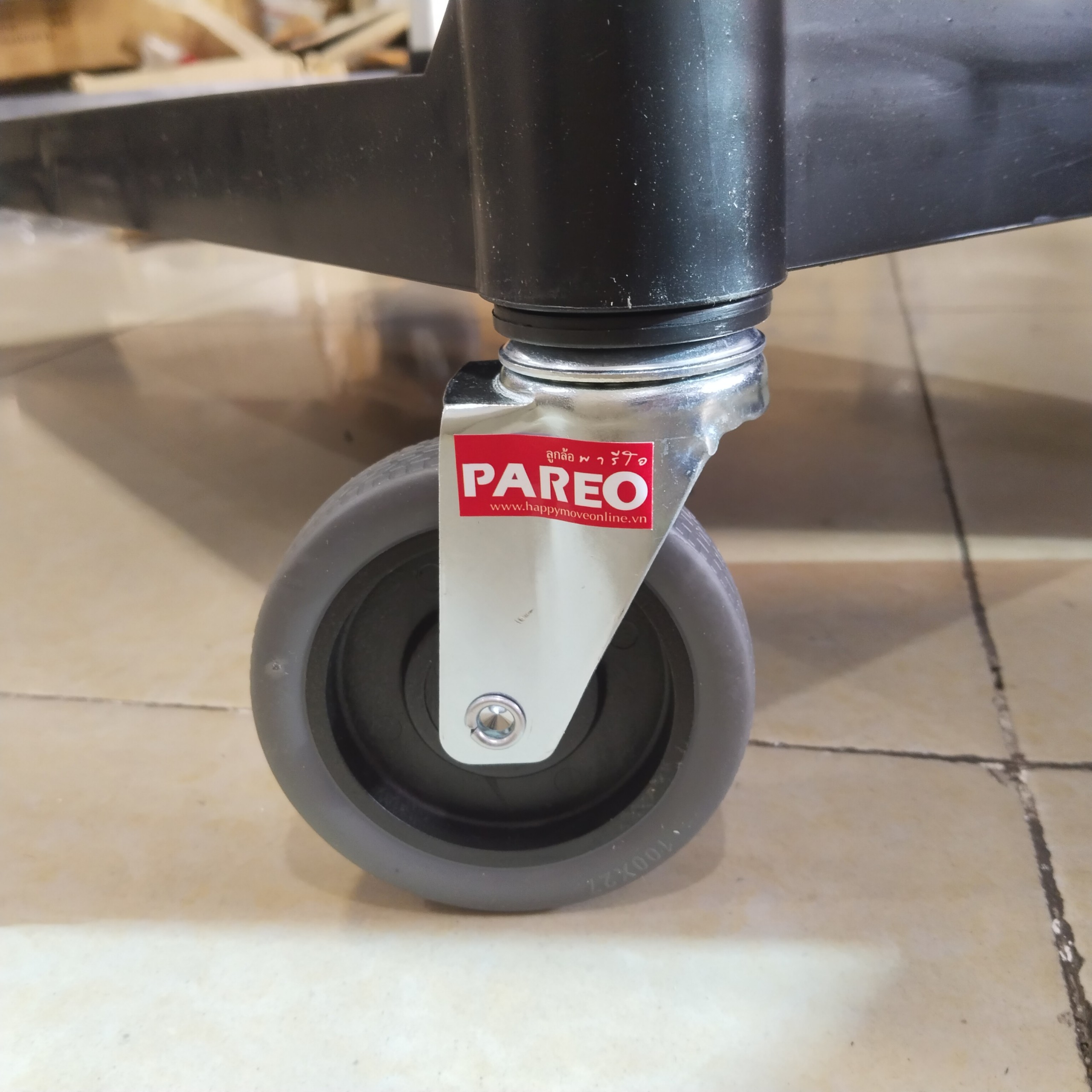 - Bánh xe cao su màu xám, xe đẩy êm ái Không làm trầy xước sàn. Xoay 360 độ.