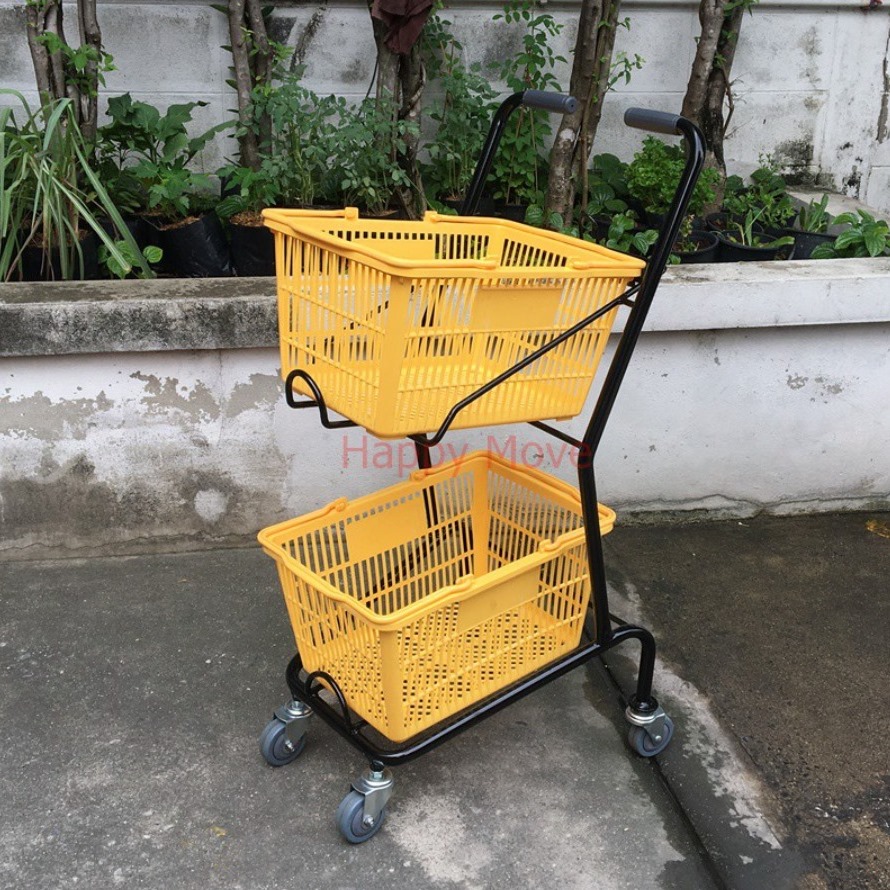 + Xe siêu thị/ xe siêu thị mini 2 tầng: Đối với các siêu thị lớn, xe đẩy siêu thị giúp khách hàng mua được nhiều thứ mà không phải mang nặng. Sau khi mua sắm, họ có thể để đồ ở cốp sau xe.