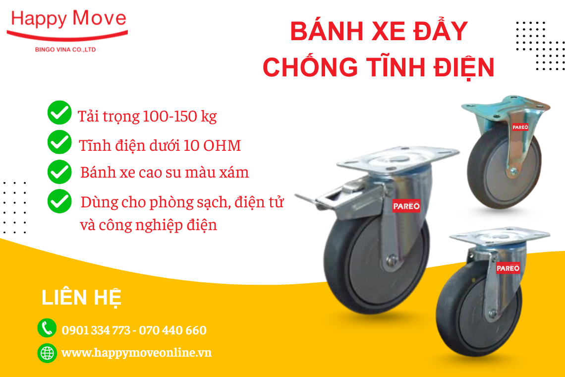 Bánh xe chống tĩnh điện HappyMove – Giải pháp an toàn cho phòng sạch & nhà máy điện tử.