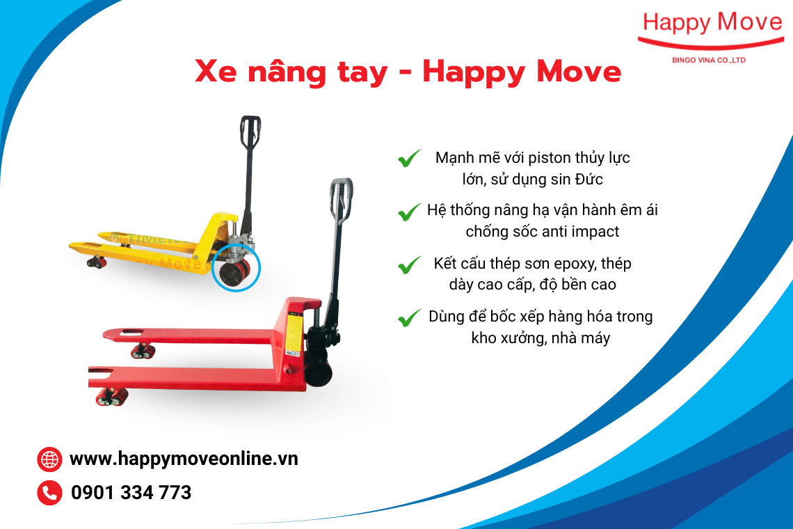 Xe nâng tay 2500kgs sản xuất từ thép dày cao cấp, độ bền cao, dùng để bốc xếp hàng hóa trong kho xưởng, nhà máy. An toàn, tay lái được thiết kế vừa vặn với chiều cao của người sử dụng, tiện lợi, dễ dàng.
