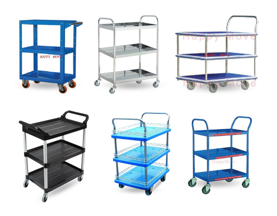 Happy Move (Thái Lan): Là thương hiệu nội tiếng của Thái Lan, chuyên cung cấp các thiết bị và phụ tùng thiết bị đẩy, nâng, chuyển dời dùng trong công nghiệp và dân dụng như: Xe đẩy hàng, xe nâng, lồng lưới, thang, xe thang và các thiết bị đẩy dời dùng cho khách sạn, siêu thị, sân bay, bệnh viện.... Các sản phẩm xe đẩy Happy Move luôn được kiểm định nghiêm ngặt trước khi đến tay người tiêu dùng. Sản phẩm đạt chuẩn chất lượng quốc tế, giá đa dạng, có nhiều mẫu mã cho gia đình và công nghiệp.