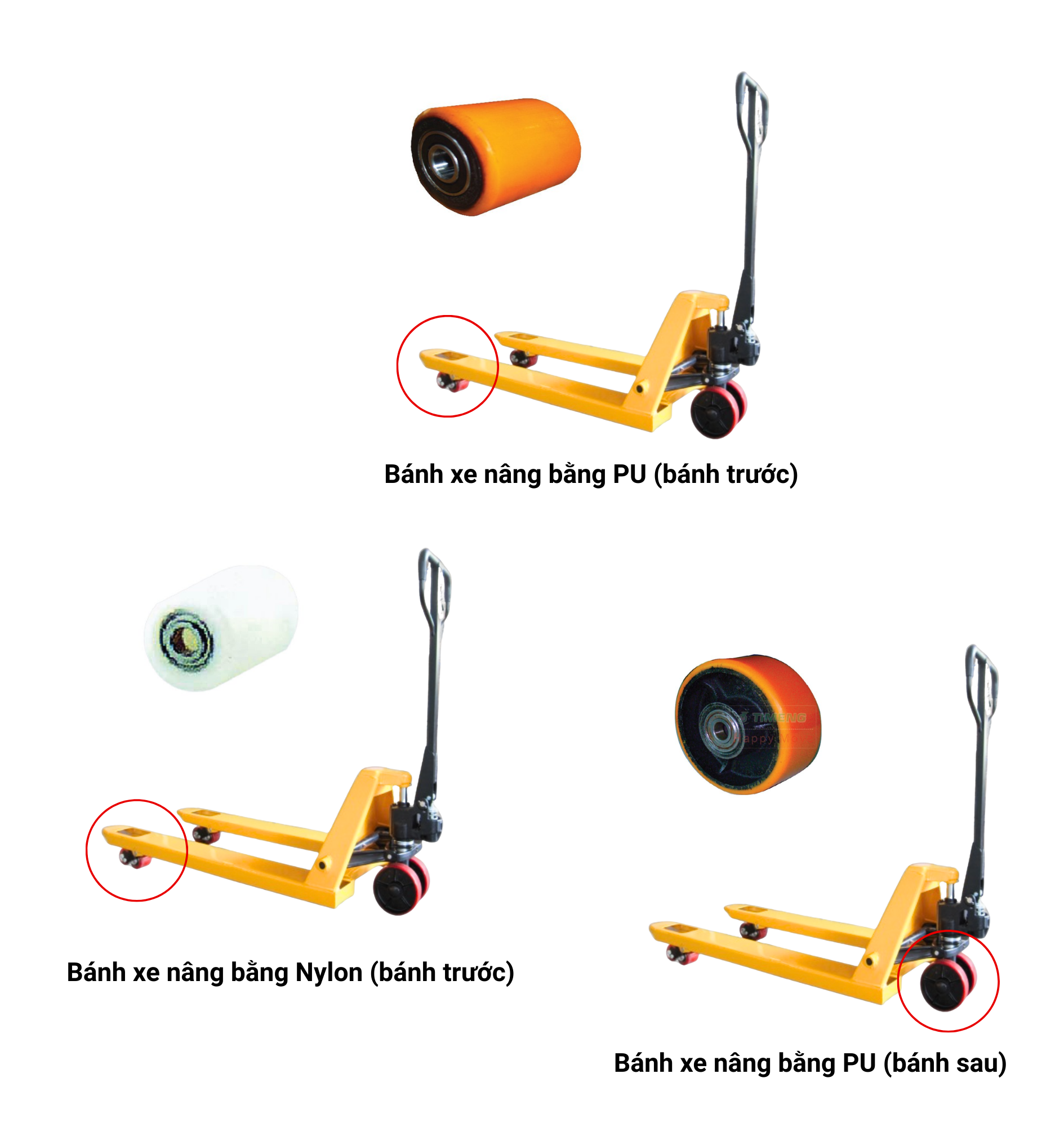 Bánh xe nâng tay PU 80x70mm (Bánh trước) - Pareo
