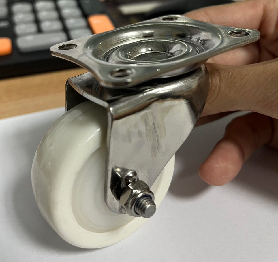 Bánh xe đẩy nylon 6 nanotech cứng, bền, không nứt, bể, thích hợp cho nhà máy chế biến thực phẩm, dược phẩm,... dùng cho các thiết bị nhỏ, nhẹ.. Càng bánh xe chất liệu INOX 304 chống gỉ, hoạt động tốt trong môi trường khắc nghiệt, ẩm ướt, hóa chất.