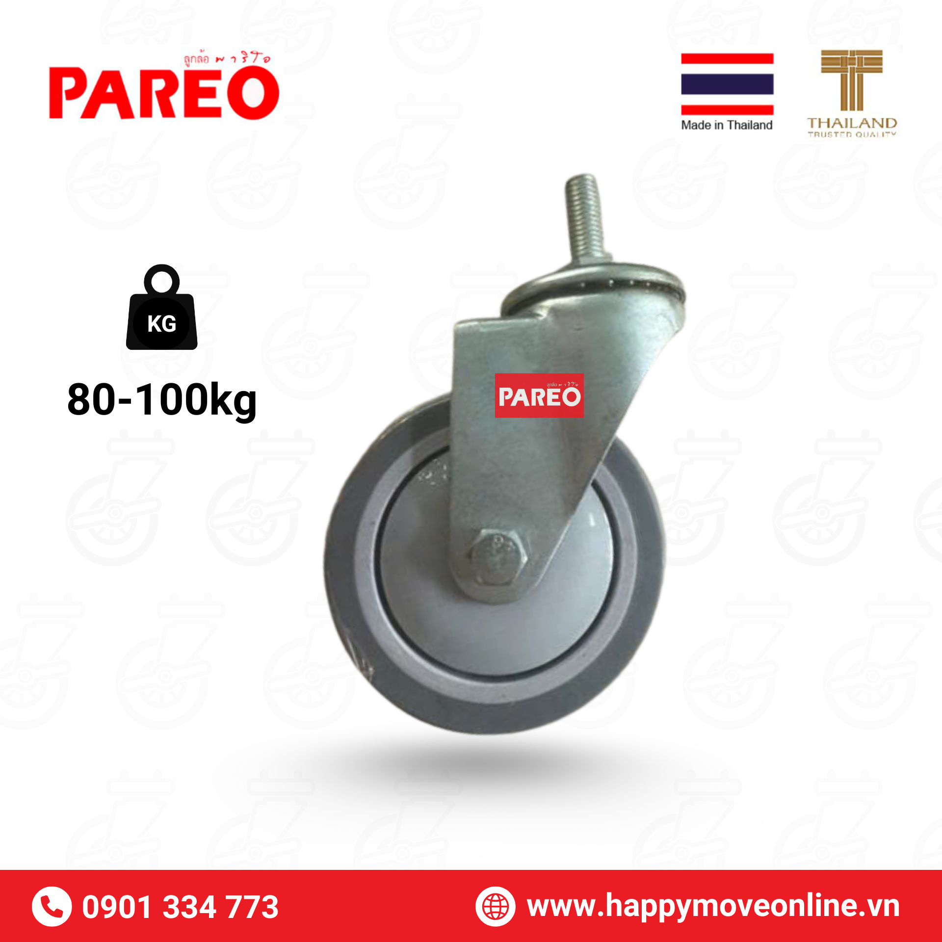 Bánh xe cao su màu xám chịu lực trung bình cọc vít , thương hiệu PAREO
