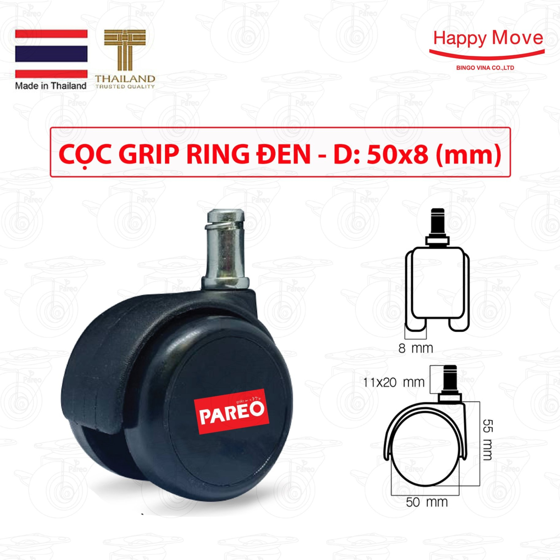 Bánh xe chân ghế văn phòng, bánh xe nội thất, kích thước 50mm, có khóa , nắp bánh xe không thể tháo rời, thương hiệu PAREO