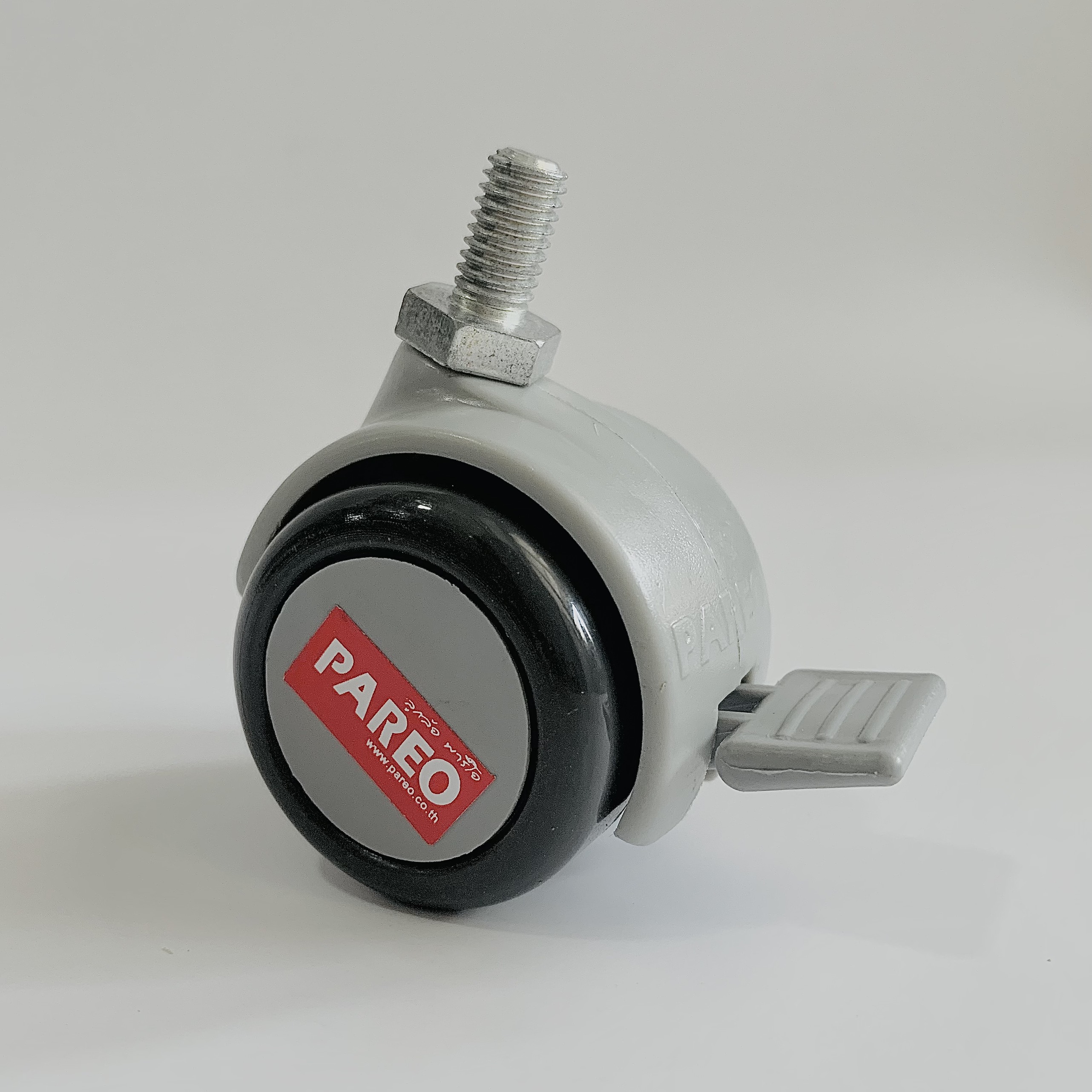 Bánh xe Thái Lan, Bánh xe ghế xoay khóa phi 50mm. Bánh xe nội thất đôi dùng cho các thiết bị như ghế xoay, tủ, kệ, các thiết bị văn phòng. Bánh xe được bọc đệm cao su mềm mại, không làm trầy sàn