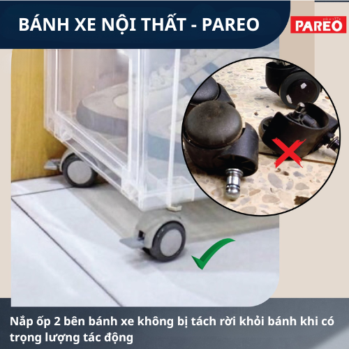 Bánh xe được bọc đệm cao su mềm mại, không làm trầy sàn