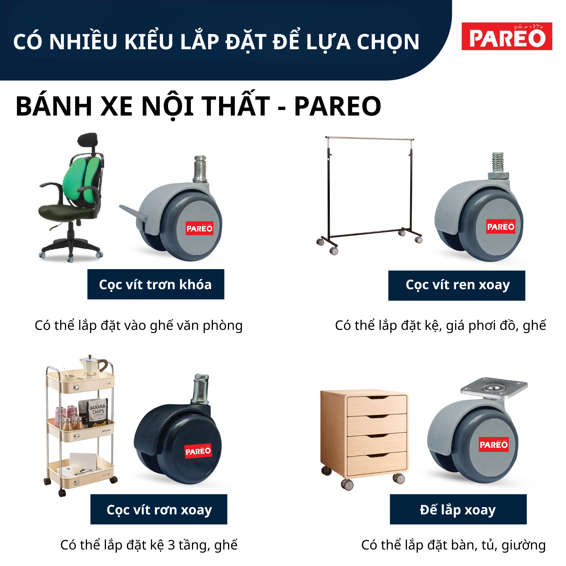 Categories : Văn phòng - Gia đình ,  Siêu thị - bán sỉ - bán lẻ ,  Ngành hàng - Dịch vụ ,  Khách sạn - Chung cư ,  Bánh xe đẩy ,  Bánh xe đẩy đôi ,  Cọc ghế xoay ,
